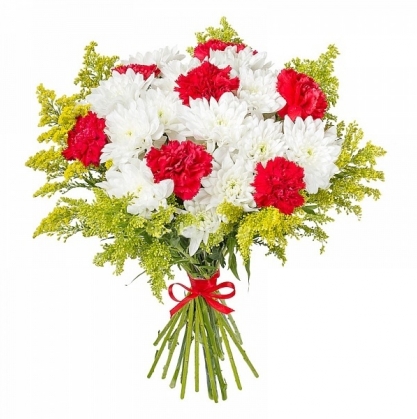 Букет из гвоздики и кустовой хризантемы с добавлением солидаго